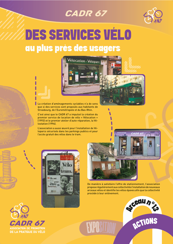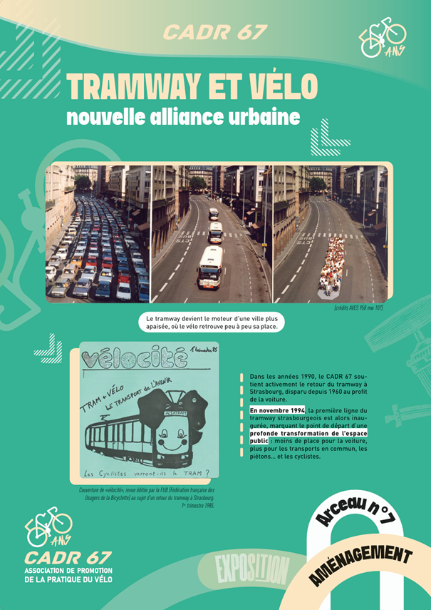 A la fin des années 1980, le CADR milite activement contre le projet d’un métro à Strasbourg, lui préférant la création d’un tramway de surface qui permettrait de repenser pleinement la place de la voiture en ville et d’accorder une juste place aux cyclistes et aux piétons. Catherine Trautmann et son adjoint aux déplacements Roland Ries réintroduisent le tramway à Strasbourg dès 1994. En une décennie, la ville de Strasbourg est métamorphosée : la circulation du centre-ville est totalement restructurée et de nombreux aménagements cyclables sont créés en parallèles des extensions du tramway.