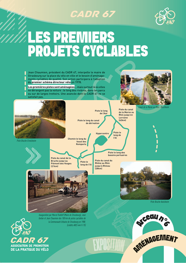 Durant les années 1980, le CADR travaille de concert avec la ville de Strasbourg pour penser la politique cyclable de la ville et proposer des aménagements adéquats. Catherine Trautmann, alors députée du Bas-Rhin, adhère à l’association en 1986 et participe à de nombreuses actions du CADR 67. Elle est élue maire de Strasbourg en 1988 : commence alors une véritable épopée du tramway.